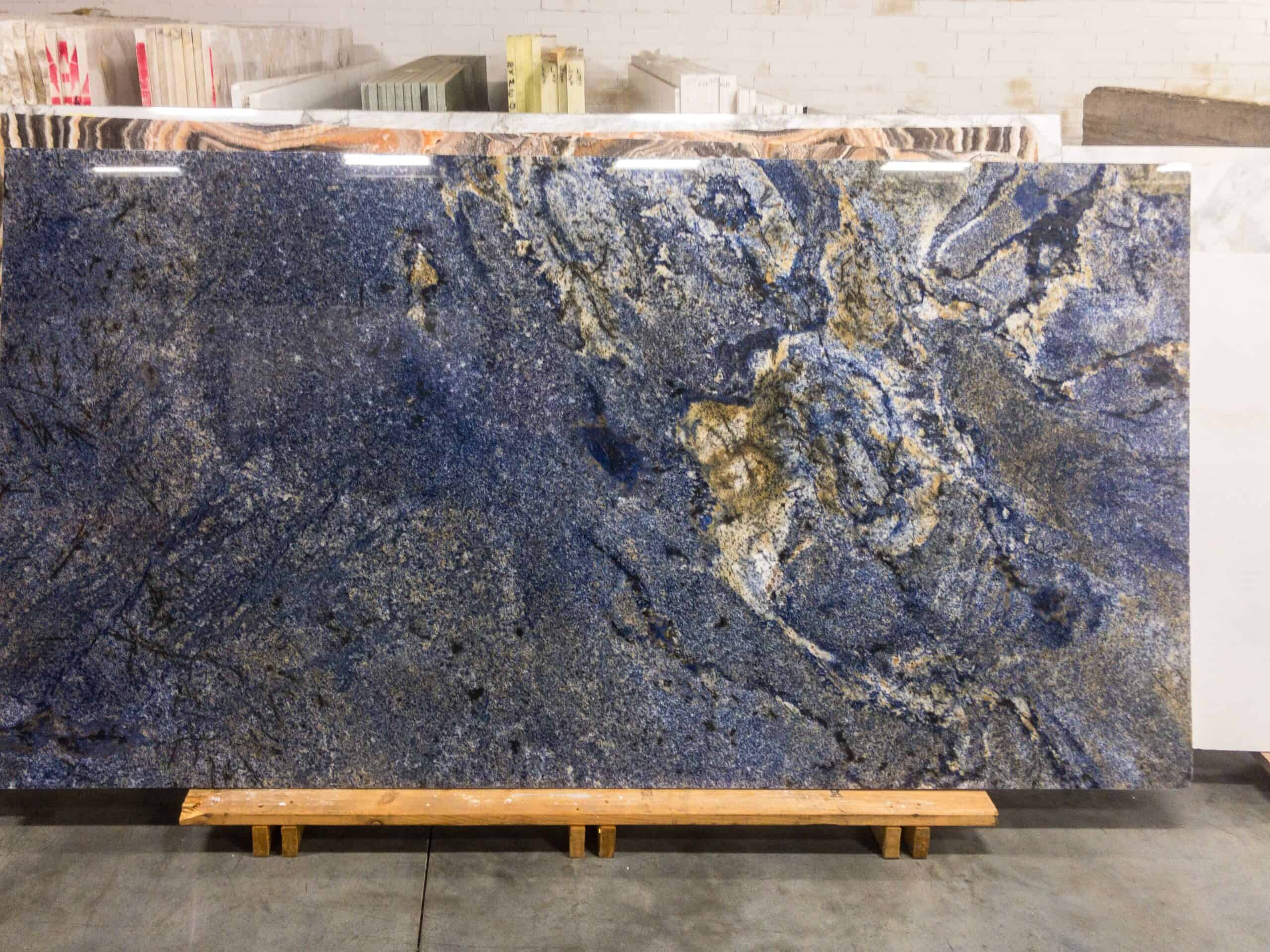 Blue Bahia granite, also known as Azul Bahia, is a premium granite (arguably the most exclusive granite in the world) quarried in Brazil. The granite slabs natural blue color makes it a rarity in the natural stone world and a favorite for those who love the ocean. Its natural blue will have many tones and typically varies from slab to slab. The heavier and consistent blue is not only more desirable, but also far rarer to extract. Currently we have 2 slabs of 3cm and 6 slabs of 2cm remaining of this rare material.